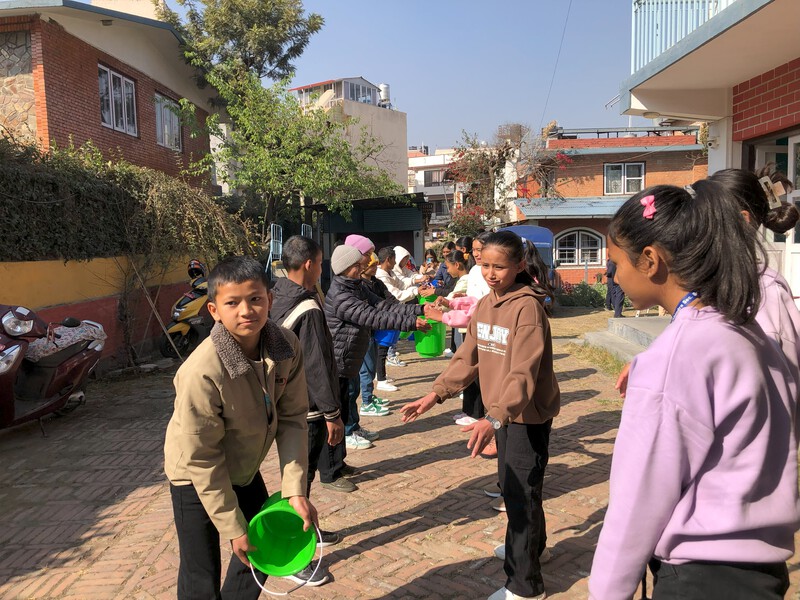 In addition to earthquake preparedness, the children gained valuable knowledge on fire safety, including how to handle situations when smoke fills the room and how to safely exit in an emergency. They were shown how to use a blanket sheet stretcher properly—a vital skill for helping those who are injured or unable to move during a disaster. The hands-on approach continued with first aid training for handling bleeding and fractures, giving the children the confidence to assist others in the aftermath of an emergency.