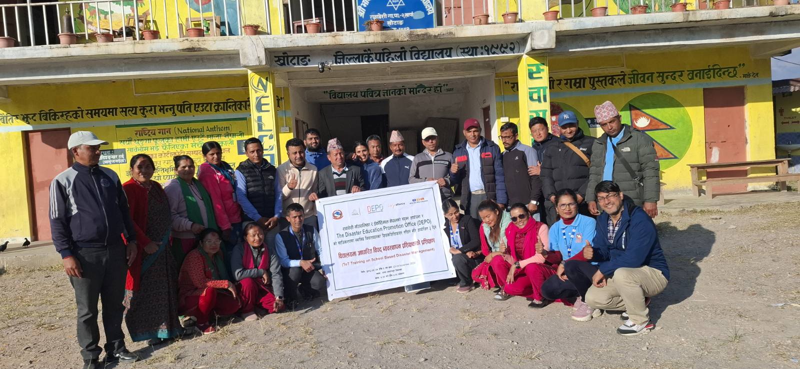 EcoHimal Nepal, seeking technical support for its Three-Star School Upgradation initiative, collaborated with the Disaster Education Promotion Office (DEPO) to deliver a comprehensive Disaster Risk Reduction (DRR) Training Programme at Bhasa Basic School, Ward No. 2, Rawabesi Rural Municipality, Khotang. With DEPO Nepal’s specialized expertise in disaster education and school safety, the programme was carried out under the Gender Friendly Himalayan School Project to strengthen preparedness, enhance DRR knowledge, and contribute to the creation of safer, more resilient learning environments in line with the Three-Star School Approach.